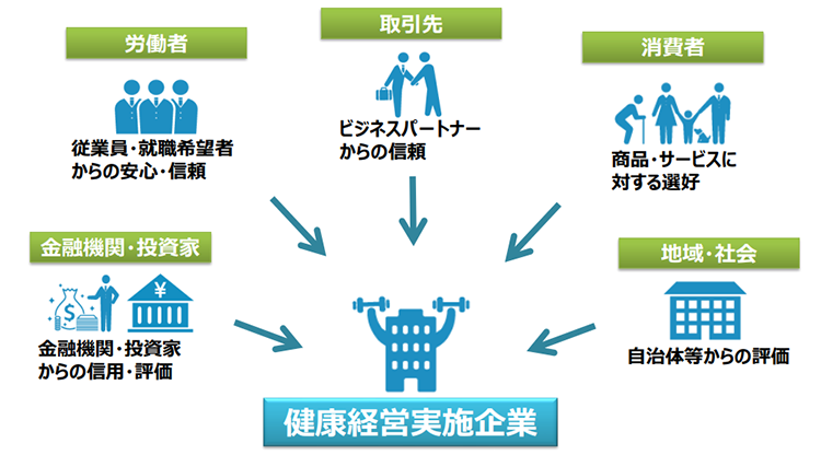 健康経営優良法人は、経済産業省が企業の健康経営を促進するため、健康経営の「見える化」、企業の社会的評価の向上、国民の健康寿命の延伸と医療費の抑制、中小企業への普及促進を目的に創設した認定制度です。