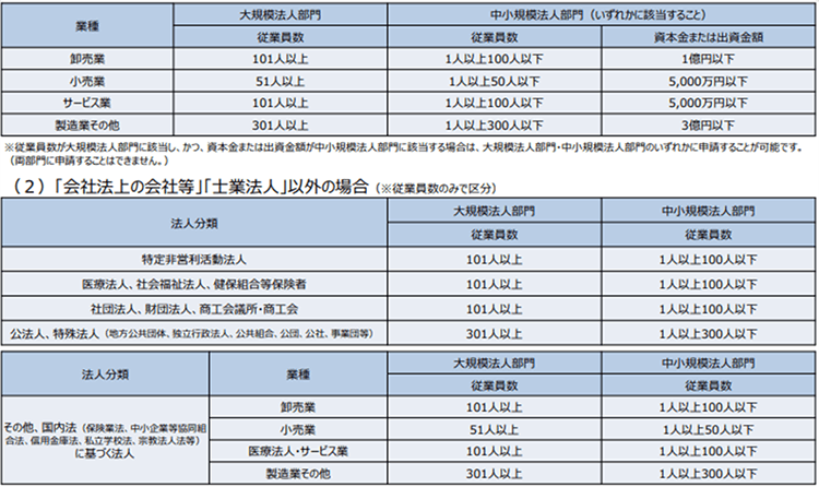 大規模法人と中小規模法人どちらに申請するかは会社の規模や業種によって異なります。