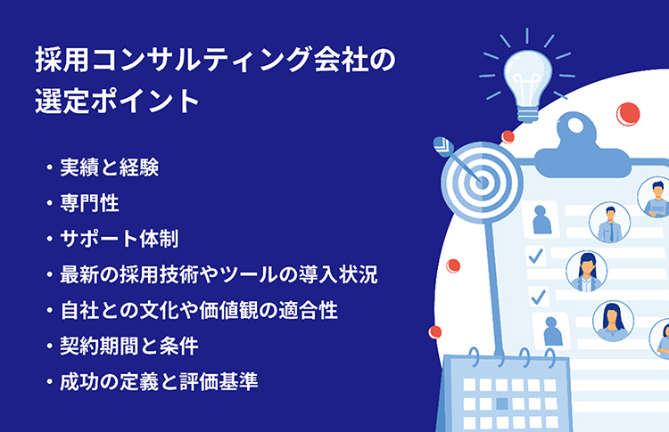 そのため、自社の業種や課題、採用したい職種やポジションなどを踏まえ、親和性の高い採用コンサルティング会社を選ばなければなりません。