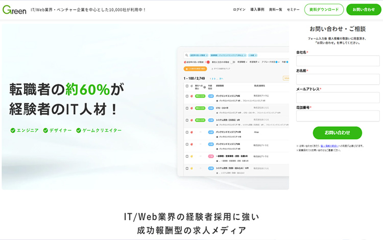 引用:【公式】IT/WEB業界の採用・求人ならGreen(グリーン)
