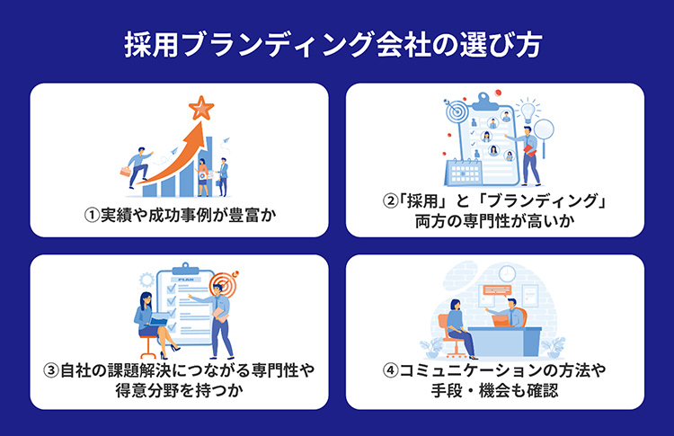 また、採用ブランディングは企業そのものの価値やイメージ、信用にもつながるため、下記のポイントを押さえ、信頼のおけるパートナー企業を選びましょう。